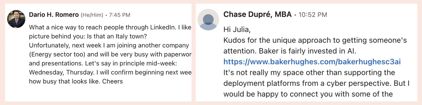 2. Innovation. BHuman’s approach of personalized messages through video is a relatively new and innovative approach that caught the attention of these executives as stated by their response.